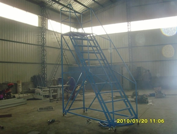 详细说明: 登高车是仓储物流中使用的一种登高作业设备,类似于登高扶梯的作用。可方便人员站在车平台上实现存取货物等作业行为。 登高车结构: 登高车的一面设有台阶(台阶旁边有扶手)供使用者登上平台,平台另三面配有护栏保证作业者的安全。平台作业面一般大小可容纳1-2人站立、转身、移动。使用者可在登高车的平台上完成从货架等高处堆取物品等动作。另外,登高车配有脚轮,可供使用者推拉转向移动,方便快捷。其中有前脚轮上配备有轮刹,刹住后,登高车固定不可移动,使用者可安全放心的登高操作。 登高车特点: 登高车结构稳固、移动便捷、使用安全,能大大提高工作效率和扩大操作空间,是工厂、仓库、商场、超市等众多场所进行登高作业的必备设施。 |