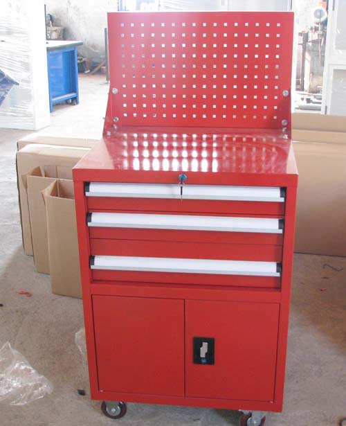 工具车由各种型号的工具柜增加顶柜和脚轮等移动部件组成。